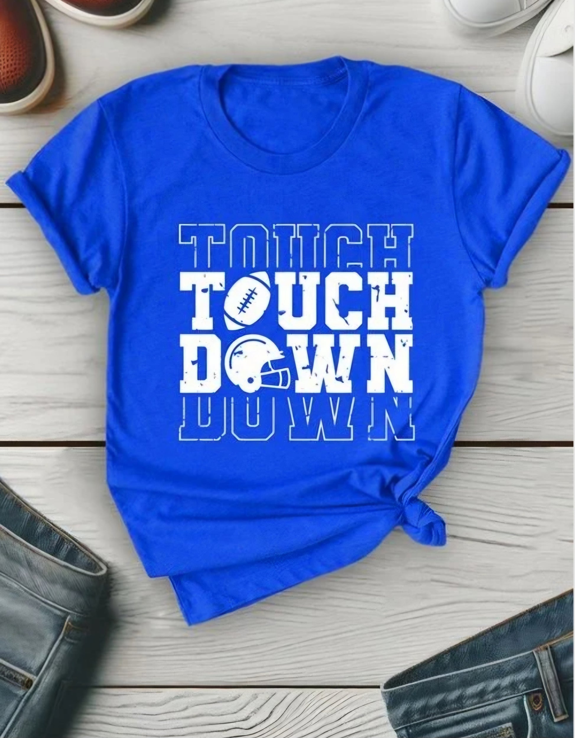This Short Sleeve Touch Down T Shirt is made from premium quality cotton and is designed to provide ultimate comfort and style. With its unique touch down football design, you can showcase your passion for the game while staying cool and comfortable. Perfect for any casual or sporty occasion.